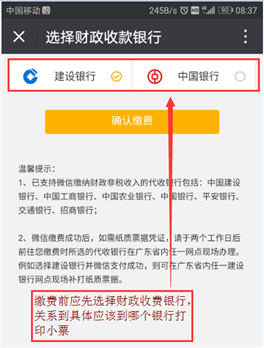 选择好财政缴费银行后,点击确认缴费,进入支付页面