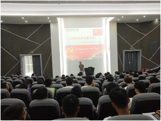 王利莉同志从大学生为什么入党讲起,通过一个个同龄人例子的讲述,让他们更深刻地理解到大学生是一个蓬勃朝气、富有创造精神、创新能力强的社会群体。这个群体求知欲望强、反省能力全面、勇于克服困难等优势,同时也成为推进新时代最有潜力的新生力量。同学们从中感受到自身的优势,更加坚定心中的信念与理想而奋斗终身,为加入中国共产党的决心更坚韧不拔。
