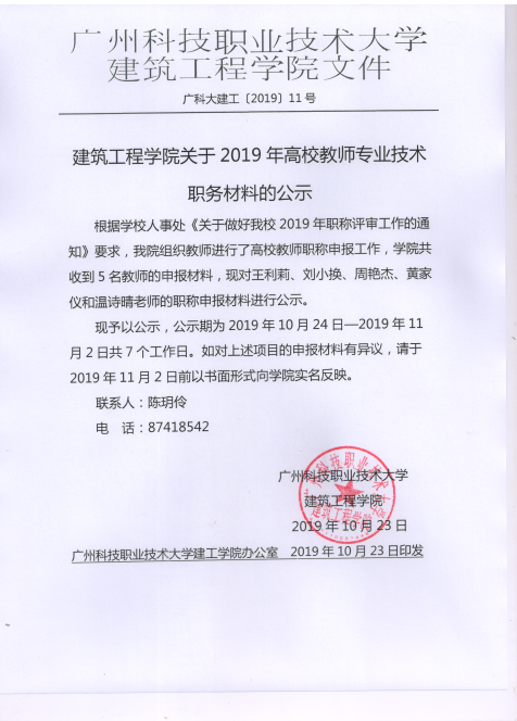 建筑工程学院关于2019年高校教师专业技术职务材料的公示