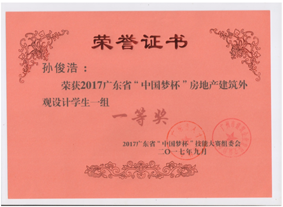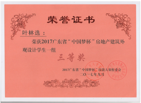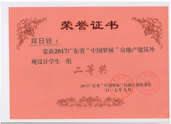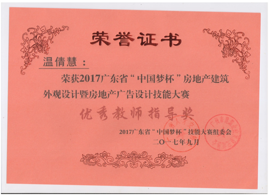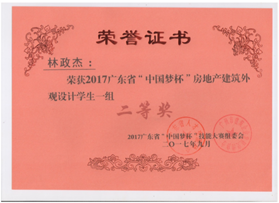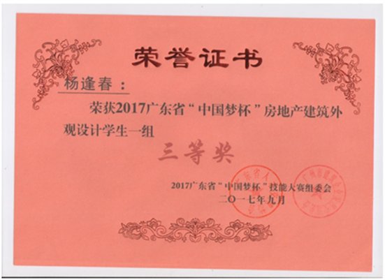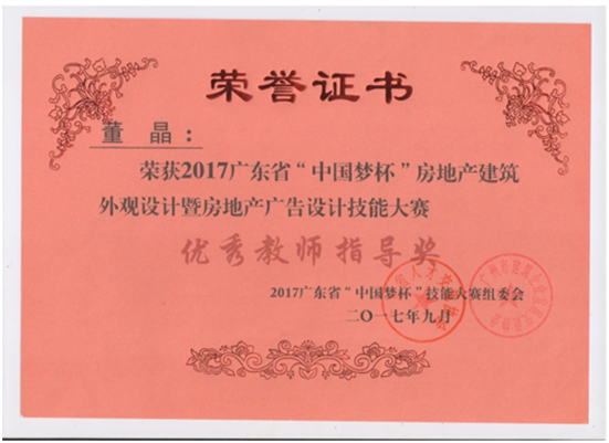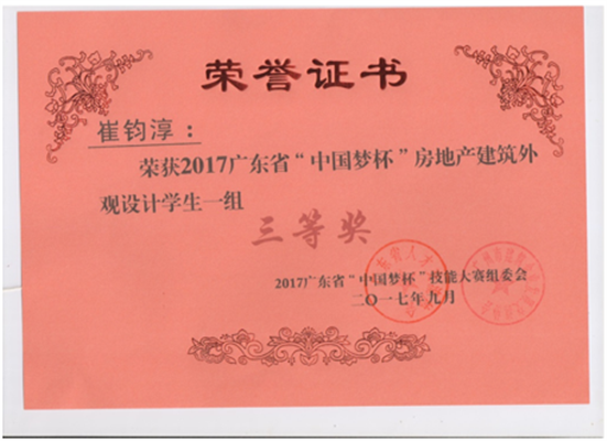 2017年6月,由广东省人才交流协会主办、广州市建筑企业发展交流协会、广东省祥粤建设职业培训学校承办的2017广东省“中国梦杯”建筑外观设计职业技能大赛拉开序幕。我院建筑设计专业学生共6人组成的参赛队,在董晶和温倩慧老师的带领下参加了比赛。