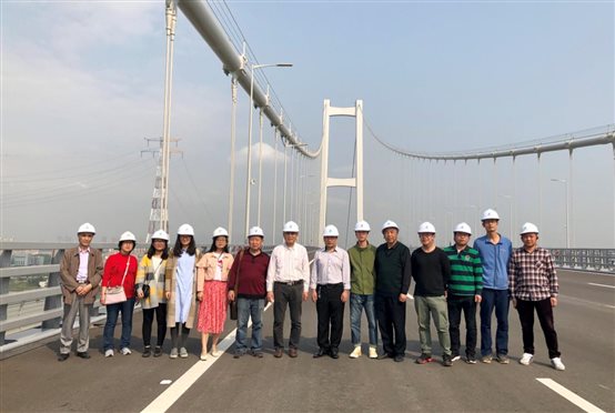 随后我院一行人乘车上桥,在施工现场一边参观虎门二桥,一边就施工技术问题与施工方工程师进行细致地探讨。