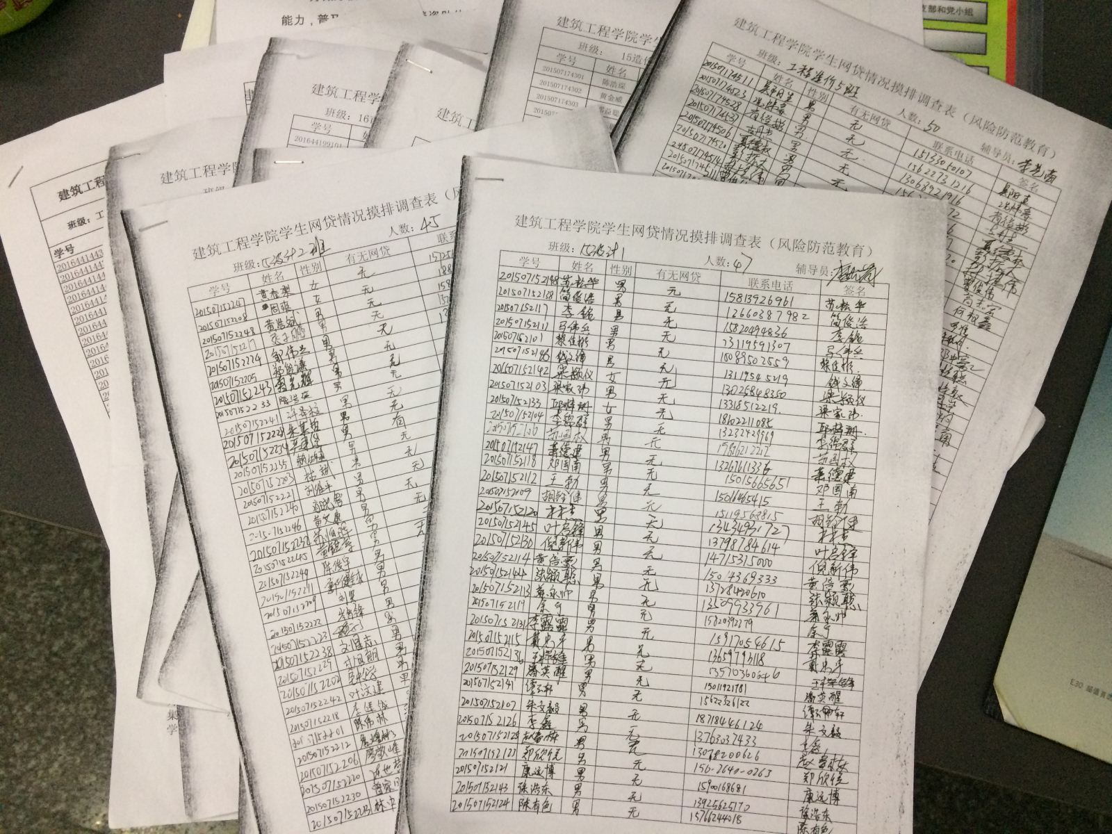 2、11月24日前,每班上交一份《建筑工程学院学生网贷情况摸排调查表(风险防范教育)》纸质版签名。