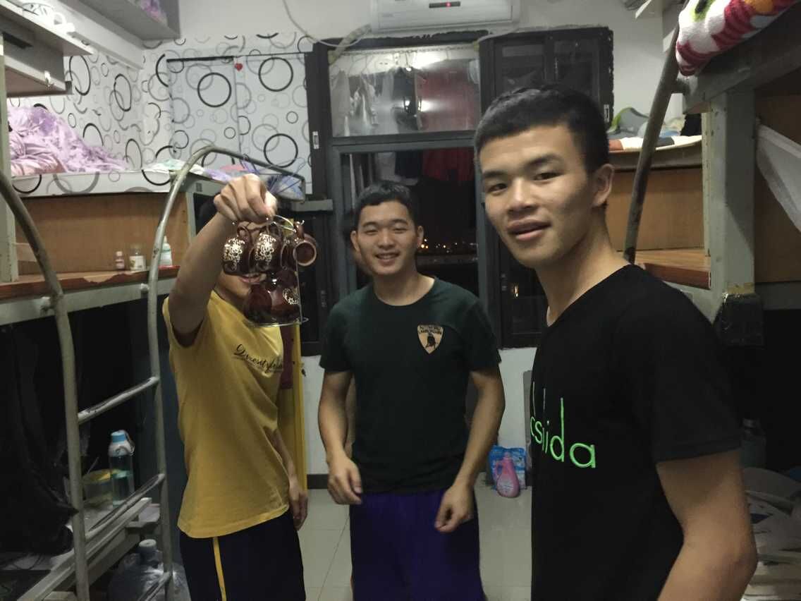 4月23日晚八点,辅导员李静老师和几名学生干部到学生公寓走访学生宿舍。本次走访的宿舍主要是14级建筑造价8班学生宿舍。辅导员李静老师在几名班委的陪同下到宿舍了解学生情况,从走访的过程中可以看出,学生状态良好,十分热情,而且宿舍整洁、干净。走访最后一间宿舍时,学生们已经泡好茶等待辅导员的到来。学生们其乐融融,主动和辅导员拉家常,辅导员在聊天的过程中向学生强调要注意个人财产安全和人身安全,按时作息,舍友之间要和谐相处。一直到晚上十点多,辅导员才离开宿舍。学生向辅导员展示茶具学生们正在泡茶