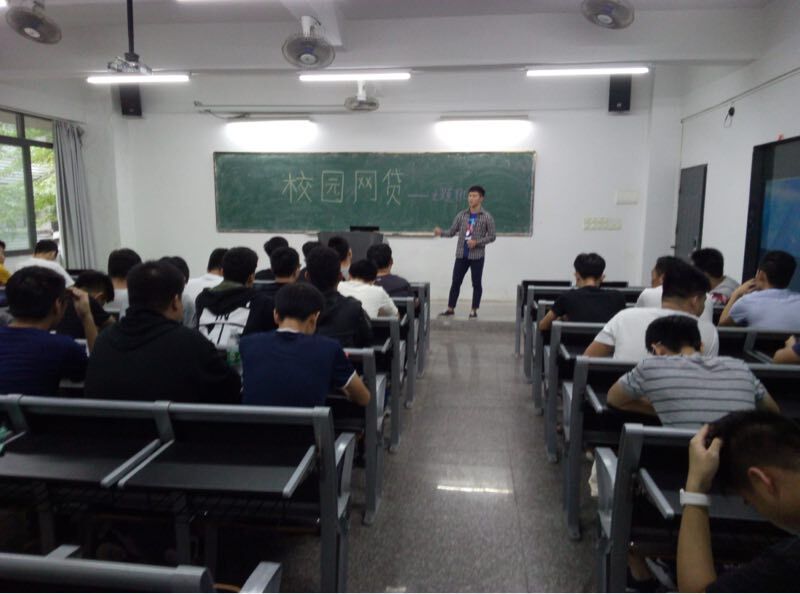 在会议中,班长把事先准备好的一些新闻报道和一些视频播放给同学们看,还给同学们进行讲解与分析校园网贷的危害。 同时,同学们也争先恐后地起来发表对于网贷的看法和见解。