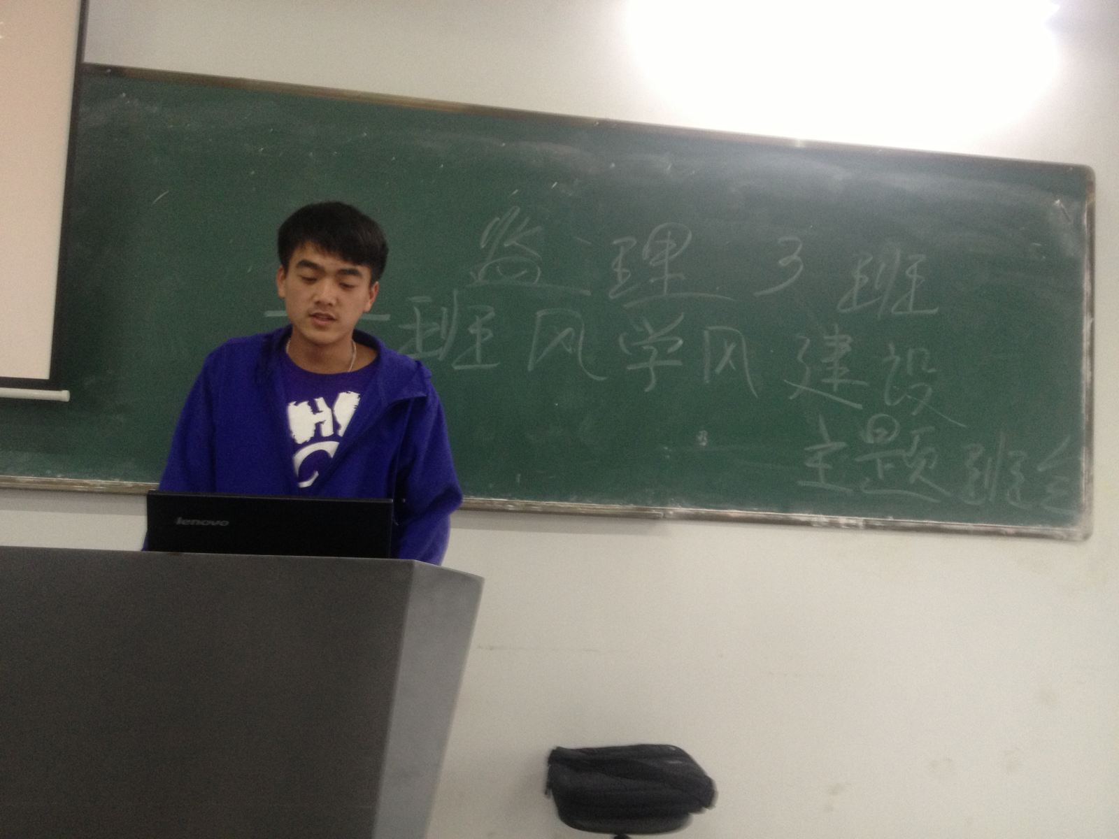 2013年4月22日16点,建筑工程系2012级施工与监理3班在5409教室召开了“班风学风”的主题班会。此班会的目的为了提高我们班集体荣誉感和团结精神,为了让同学们更有集体观念和学习动力。