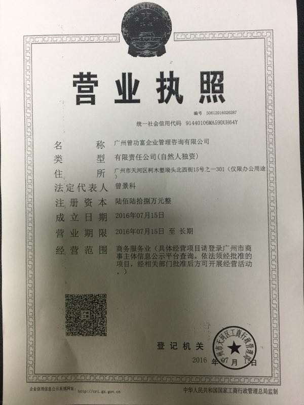 公司名称 | 广州曾功富企业管理咨询有限公司 | ||