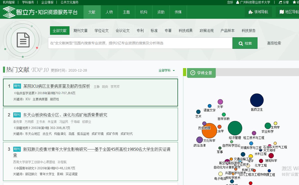 智立方是一个大数据知识服务平台,整合了期刊论文、学位论文、会议论文、专利、标准、专著、成果、产品样本、科技报告、政策法规等十种类型文献,提供各种文献检索、数据分析、数据挖掘和全文保障服务,一站式为用户解决各类知识资源的情报需求。