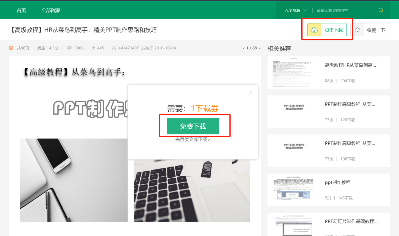 (4)点击右上角下载按钮,即可下载文档资源