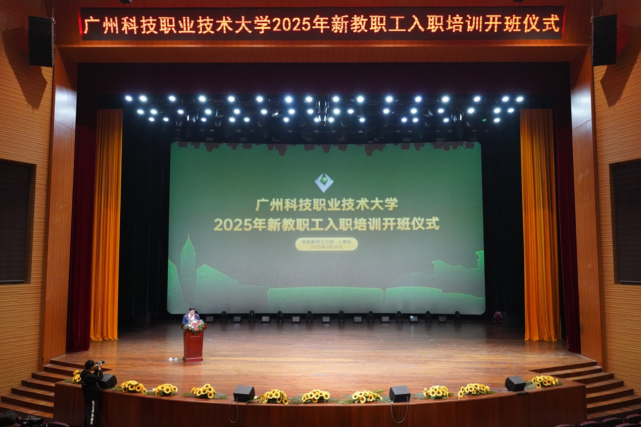 (广科大新闻网讯)为帮助新教职工,尽快适应学校教学、管理、服务各项工作,践行教育使命,弘扬师德精神,2月26日,我校在大剧院举办2024-2025学年第二学期新教职工入职培训开班仪式,75名新入职教职工参加本次培训班。学校党委书记冯小宁,副校长张浩,学校办公室主任宋亚平,教务处处长杨伟隆,科研处处长吴福根,教学督导办与教师发展中心主任杨乃良,人事处常务副处长吴育新出席开班仪式。开班仪式由人事处常务副处长吴育新主持。新教职工入职培训开班仪式现场人事处常务副处长吴育新主持人事处常务副处长吴育新向新入职的教职工表示热烈的欢迎,强调教育是国之大计、党之大计,也是强国建设、民族复兴之基。站在全省教育大会的新起点上,你们的到来,如同晨曦初照,为...