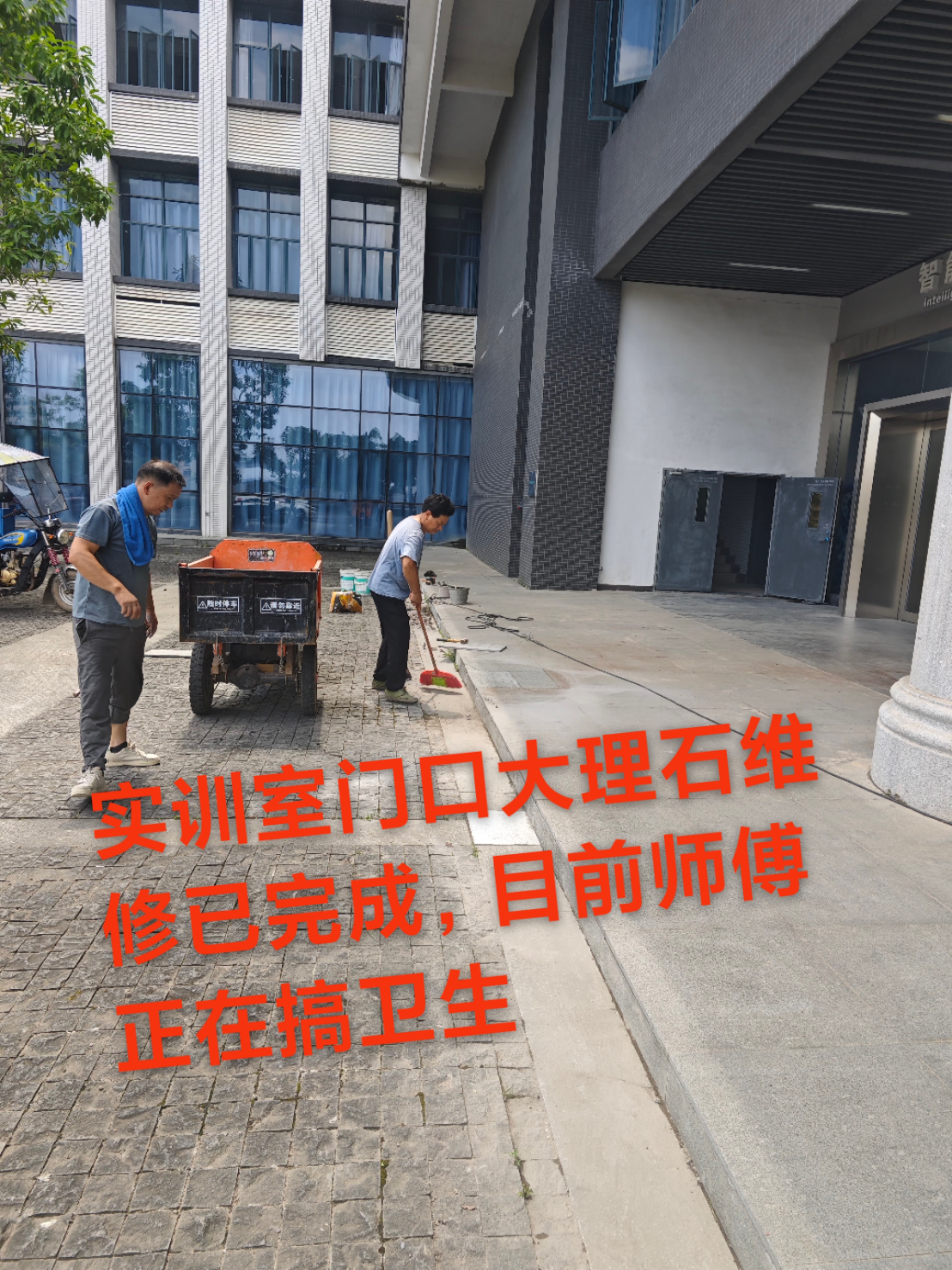 为了更好地改进文化氛围,我们对部分门牌及标识进行了重新制作,对地面旧贴纸更换或者直接去除掉,增加地面区域划分标识:拆装机器人实训区按照功能区域粘贴黄色斑马线;机器人实训室按理论教学区和实操训练区域、不同功能分区粘贴黄色斑马线。厕所区进行了洗手盆更换、更改;铺设了草坪垫;对部分线路、网络进行了整改、铺设;对整个基地的卫生、布局进行了详细的作业。