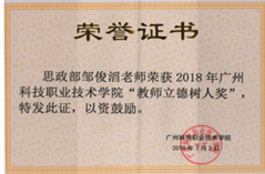 从校内外各种获奖来看,支部党员在两年的时间中就获得省级以上教学比赛31项,校内奖项14项。特别是涌现出四个在全国性比赛中获奖的党员老师。如邹俊滔老师获2017年全国高职高专思政课教学能手称号,朱长新老师在2018年指导学生获得了全国大学生数学建模竞赛一等奖,刘利老师获得了2017年全国高等职业院校体育教师技能大赛二等奖,而在此之前,老党员曾学龙教授还获得了全国高校思政课教师影响力提名奖,在全国高职高专思政课微课比赛中获得了一等奖。支部还积极发动党员和非党员参加广东省民办高校微党课比赛并取得了2个一等奖,2个二等奖的优异成绩。其中,王润萍和刘晓黎副教授分别在2015年和2018年获得了微党课比赛一等奖,周娇和邹俊滔老师在2016和2017年获得了微党课比赛二等奖。
