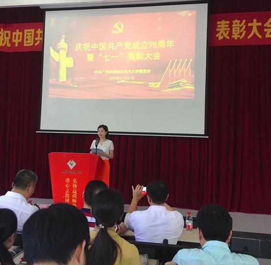 2019年7月1日,为庆祝中国共产党成立98周年,展示宣传我校基层党组织的新气象和师生党员的新风貌,学校党委举办了“七一”表彰先进基层党组织、优秀共产党员和优秀党务工作者的大会。