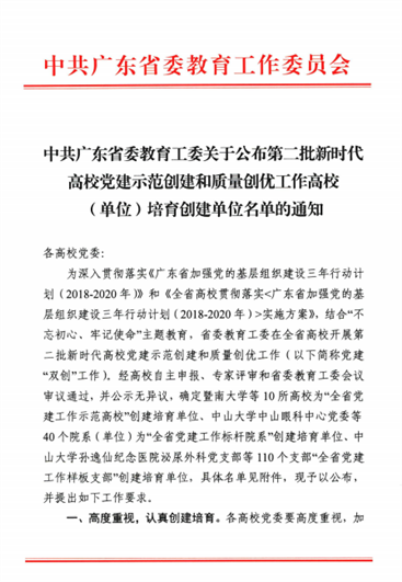 王素芳、曾学龙报道:近日,中共广东省委教育工委公布的第二批新时代高校党建示范创建设和质量创优工作培育创建单位中(以下简称“双创”工作),华亿在线思政党支部获得全省党建工作“样板支部”培育创建单位立项。