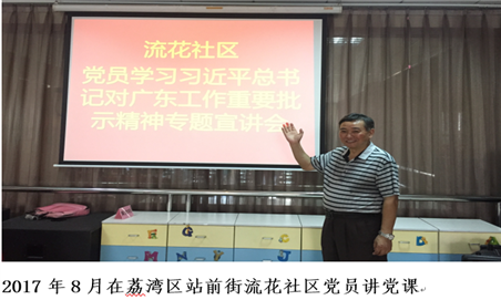 抓活动,党建工作开展有声有色。支部围绕学校中心工作,结合部门实际开展了一系列有质量、有特色、有声势的宣传教育活动。开展了“戴党徽、亮身份、正师风、塑师德”活动;“新时代、新征程——学习十九大精神接力竞赛”;法制宣传日开展大学生宪法宣誓;“十九大报告学习辅导进班级”和“十九大报告学习辅导进社区”等活动。开展了参观东江纵队纪念馆送展览送讲座等各类主题党日活动。
