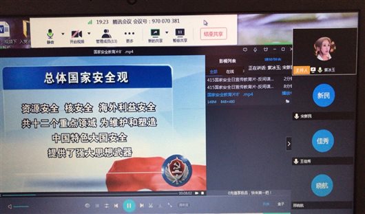 4月15日是第5个全民国家安全教育日,值此重要时间节点,为深入学习习近平总书记提出的“总体国家安全观”,大力宣传国家安全思想,提高全体党员维护国家安全的意识,当天下午2点30分,思政部党支部召开全体党员网络会议,开展了“增强国家安全意识,自觉维护国家安全”主题党日活动,全体党员齐刷刷加入了支部腾讯会议线上平台,围绕这一主题进行了在线交流学习和讨论,与会党员结合自身实际畅谈了自身对国家安全的认识和思考,以及在疫情期间如何维护国家安全。