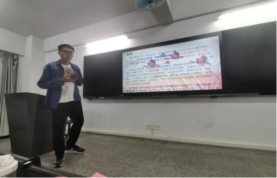 讲座开始,伍艺宏同学先结合日期,从10月23号的重阳节开始,以一句“独在异乡为异客,每逢佳节倍思亲。”切入主题,讲解了“归乡”是一种源远流长下来的模因,同时也是一种无形的向往,不会过时并且将会一直流行的一个客观事实,讲述的顺序按照时间顺序,他从古代的中国开始讲起,用诗词的名言名句,讲述了各种的归乡情怀紧接着,他按照朝代的顺序,先后举出了通过几首诗词讲述了归乡的多种心境,在通过一段回顾让时间过渡到近代中国史当中,论述了为了改变落后祖国而“归乡”的青年志士,让听讲者在通过名言名句回顾历史的同时又能理解归乡和为什么归乡。