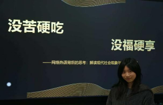 在当下社会,“没苦硬吃”与“没福硬享”这两种截然不同的生活态度成为了人们热议的话题。它们分别代表了老一辈与年轻人对于生活、价值和幸福的不同理解和追求,而这种差异正在对社会产生深远的影响。本场主讲同学唐思怡同学为同学们带来的主题演讲是“没苦硬吃VS没福硬享”。