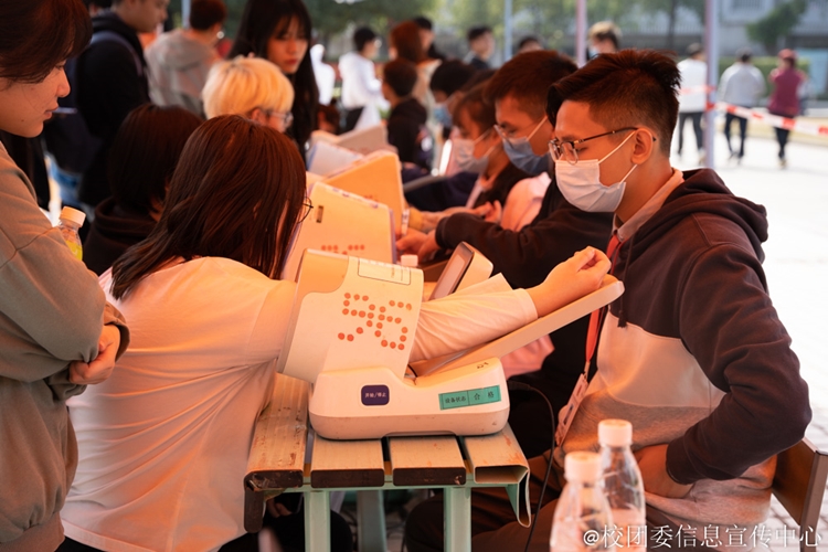 (本网讯)波涛让江河澎湃,热血使生命沸腾。为了培养广大青年的公民意识和无私奉献的精神,由广州血液中心和我校团委社会实践部联合发起了以“关爱生命,无偿献血”为主题的大学生无偿献血活动。本次活动于2020年12月9日至10日在校内荔枝园顺利展开。广大学子积极参与,在校园内掀起一股无偿献血的爱心热潮。