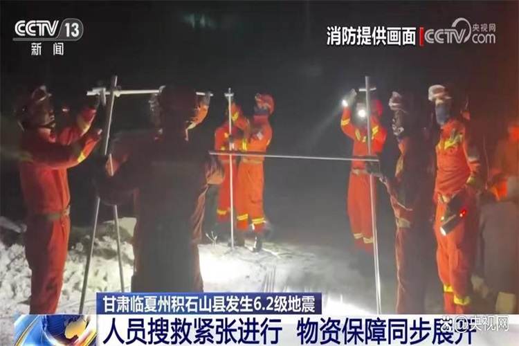 甘肃省森林消防总队400人接到指令后立即集结,携带装备、物资赶赴震中连夜开展人员搜救、物资保障工作。由于夜间气温较低,消防人员为受灾群众发放大衣,搭设帐篷,生火取暖。其次,消防救援人员采取人工和犬搜索相结合的方式,开展人员搜救、安全隐患排查。