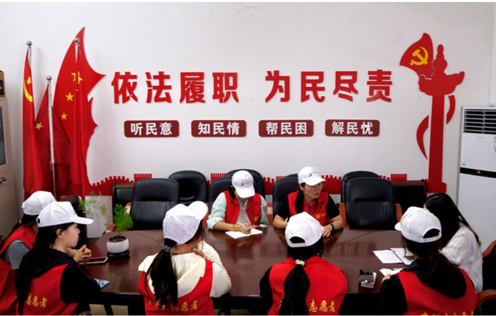 (图为“新心相遗”实践团与团委负责人开展访谈 何东婷 摄)