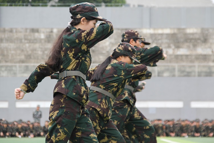 随后,军体拳方阵震撼入场,同学们动作精准规范,气势恢宏,每一拳、每一脚都凝聚着力量与决心。再看匕首操方阵,刀光剑影之间,展现出的不仅是速度与精度的完美结合,更有面对挑战无所畏惧的勇气和信念,令观者赞叹不已。