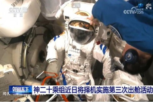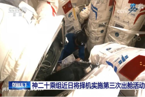 中国载人航天工程办公室宣布,神舟二十号航天员乘组将于近日择机执行第三次出舱任务。指令长陈冬及航天员陈中瑞、王杰已圆满完成各项准备工作。目前,空间站组合体运行状态稳定,乘组全体成员身心状况良好。