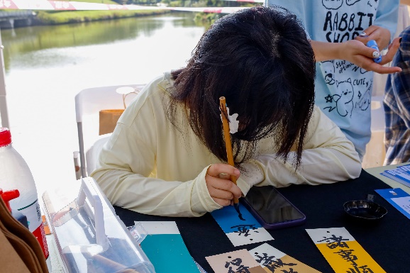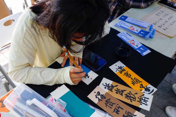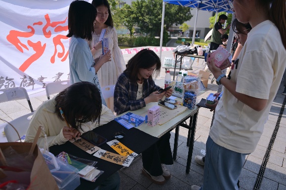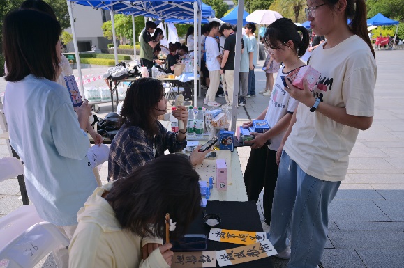 我们瀚麟书画协会的全体成员的积极响应,为活动的成功奠定了基础。协会的摊位主要是现场书画书法帮忙写作,包括书画扇子、书画书签、书画纸袋。吸引了许多同学前来参与,我们协会的工作人员也积极向前来的同学介绍摊位,也为在书画游戏过程中遇到问题的同学们提供帮助。