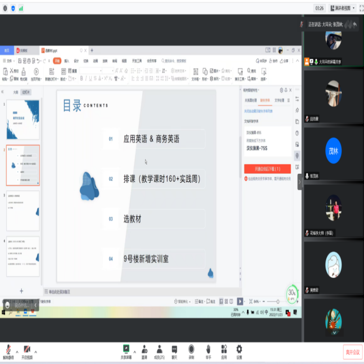 2022年11月23日下午,外语外贸学院应用英语与国际商务教研室共同举办线上教学交流研讨会,外语外贸学院院长李磊,副院长廖丽玲、副院长杜艳红参加了此次会议。