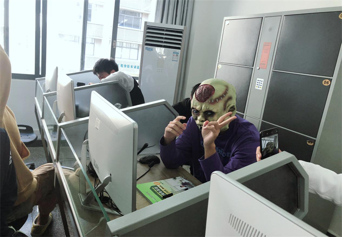 英语学习背景介绍五分钟后,我们期待的英语游戏开始了。Judy老师变魔术般戴上了一个吓人的面具,目的给我们营造了浓浓的万圣节气氛,顿时她把课堂气氛提高到了最高点。