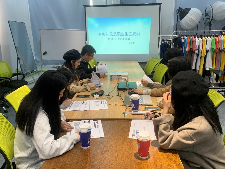 为了进一步强化学生的商务礼仪专业知识和技能,了解学生的实习工作及生活情况,及时解决学生实习中存在的问题,11月17日上午,外语外贸学院实习指导老师谢彦君前往广东瑞动服装有限公司为20级商务英语专业陈嘉欣、谢梦、冯海儿、陈诗溶、陈奕韬等实习生开展企业课堂。