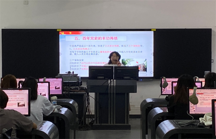 王院长从习近平总书记七一讲话的重要意义、五个庄严宣告、中国共产党因何诞生、中国共产党成立后做了什么、中国共产党的丰功伟绩、中国共产党的成功经验、中国共产党的新征程、七一讲话的启示共八个方面进行了授课。王院长说,我们都是生在红旗下,长在春风里的新中国建设者和接班人,有幸在今年见证了我们党的百年历史。从建党的开天辟地,到新中国成立的改天换地,到改革开放的翻天覆地,再到党的十八大以来党和国家事业取得的历史性成就、发生的历史性变革,真的是波澜壮阔。作为外院的主力军,希望各位党员不论是在现在还是将来的生活工作中,牢记自己的党员身份,不忘初心和使命,在百年党史学习中提高认识,从党史学习中汲取前进力量,不负青春韶华,筑牢理想信念。