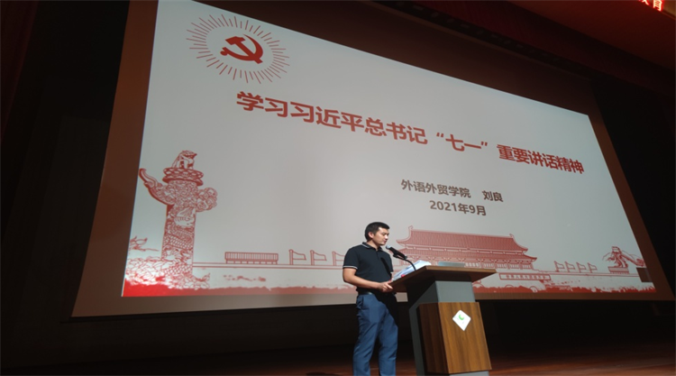 2021年9月,外语外贸学院院长王英宏教授、书记刘良同志分别为外语外贸学院毕业生党员、在校实习生及2021级专升本同学600余名同学讲授“2021年秋季思政第一课”。王英宏院长以“习近平“七一”重要讲话的逻辑框架与基本精神”进行授课;刘良书记对2021级专升本同学做了“学习习近平总书记“七一”重要讲话精神”的授课,并对同学们寄予厚望。