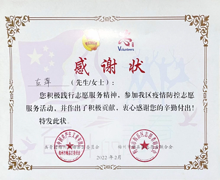 她时刻不忘自己党员的身份,今年寒假期间,她积极参与三下乡支教社会实践活动,亲身体验乡村教育与城市教育的落差,给孩子们带去希望和慰问;周末有空就下乡参与美丽乡村建设,把原本单一的墙面绘制成一幅美丽的风景,增添了乡村的活力;2022春节期间因疫情蔓延到她的家乡,她毫不犹豫在第一时间参与到防疫工作中,帮助大家渡过难关,齐心协力奋战在“疫”线上,用实际行动诠释了自己的初心和使命,让党徽闪耀出灿烂的光芒。她说如果党员都不积极主动站在前方,身后的人民百姓怎么办?她也因此受到了相关部门表扬,她依然会坚守初心,不断奋进,与各为莘莘学子一起向未来!