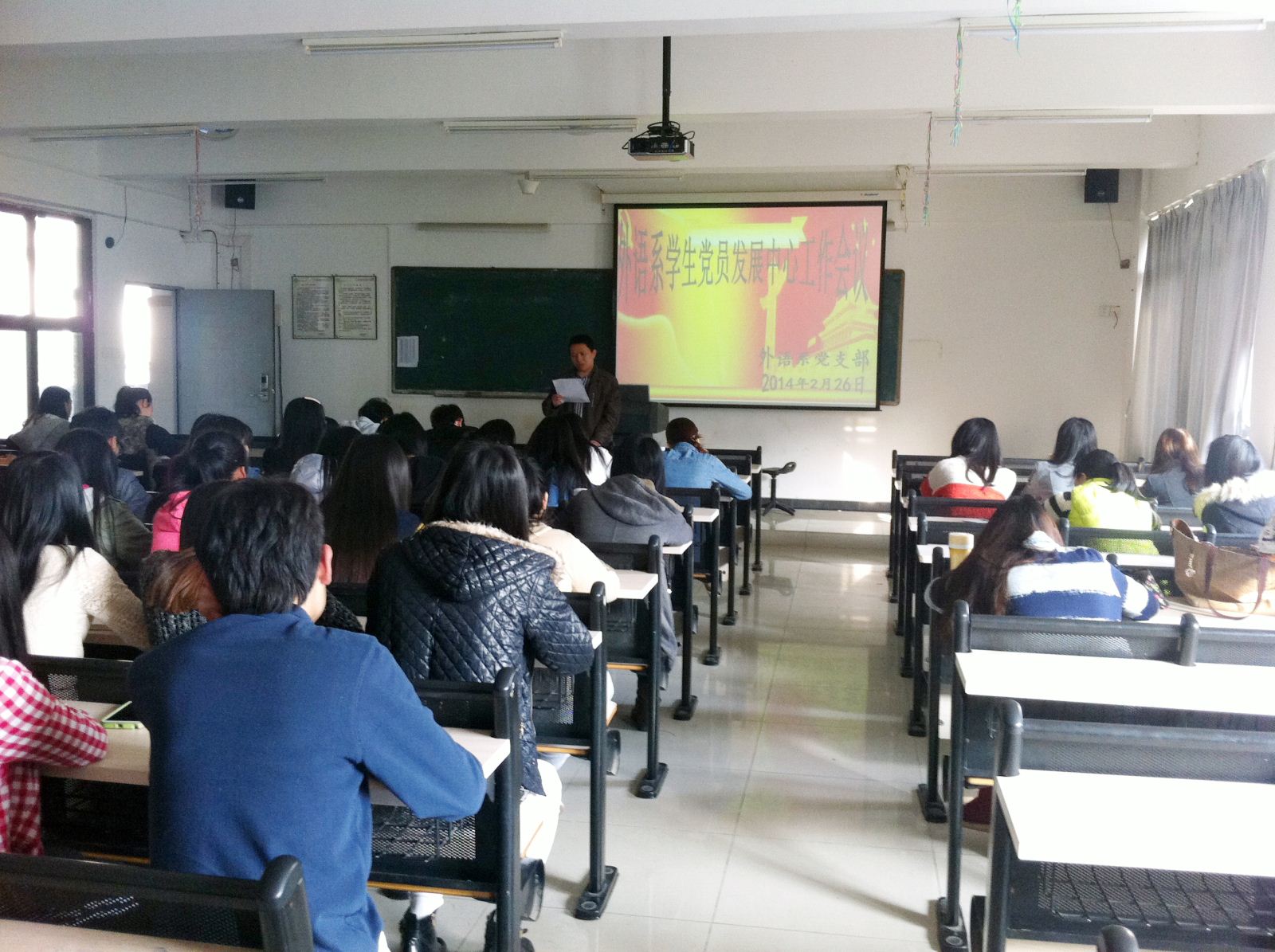 2月26日下午4:30,外语系在1203召开学生党员发展中心工作会议,系部党书记邱健以及外语系党小组全体人员参加了此次会议。
