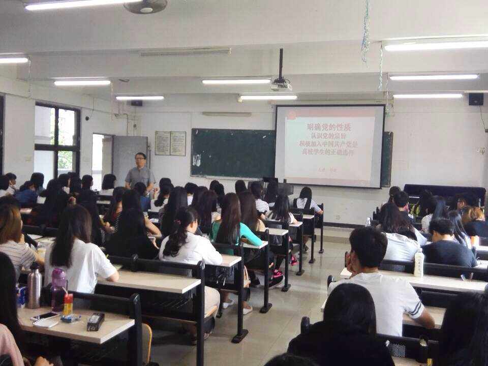 党支部书记邱健老师、辅导员刘惠芳老师分别以《积极加入中国共产党是高校学生的正确选择》、《中国共产党的性质和宗旨》、《党的光辉历程》、《入党的手续和程序》》为题给学员们进行讲授。