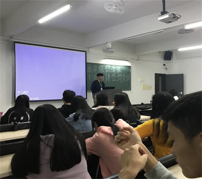 2018年11月26日晚上19点在2506课室举行了外语外贸学院团学干部学习自律公约。