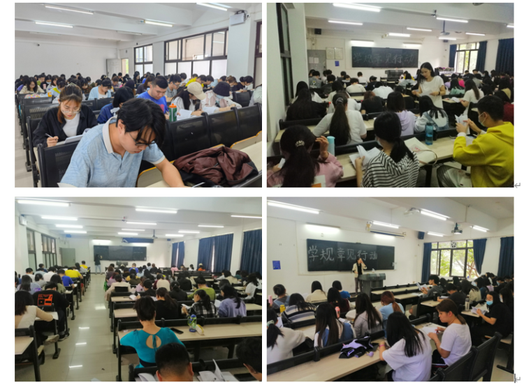 为了普及新生对《华亿在线学生管理规定》的认识,加强在校学生对校规校纪的深入了解,维护学校正常的教育教学秩序,树立良好的学风和校风,自10月18日以来,外语外贸学院辅导员深入各个年级、各个班级开展“学规章、见行动”主题班会。所谓“无规矩不成方圆”,本次班会主旨明确,旨在树立良好的学风和校风,对大学生行为规范有更加深入的认识,并付诸行动,增强学生的自我教育、自我管理,加强同学们的规范意识和提升同学们的防范能力,降低任何可能发生的风险,排除一切可能的隐患,使同学们能够在一个安全健康的环境下认真学习。