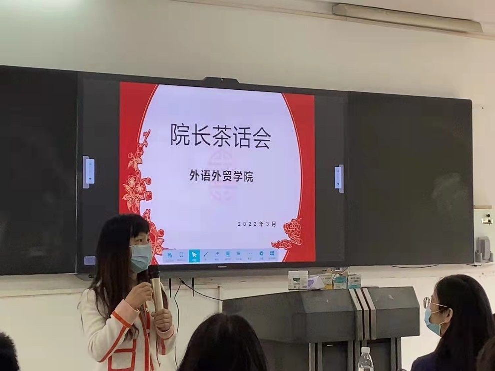 为及时了解我院学生的学习与生活情况,为同学们营造轻松愉快的学习和生活环境,进一步提高教学与管理水平,我院于3月30日下午在1204举办“院长茶话会”。我院应用英语本科专业学生班干部及学生代表参加了此次活动。学校教务处科长陈毓秀、外语外贸学院副院长杜艳红、廖丽玲,应用英语教研室主任张茂林,辅导员沈欧旎、黎晓玲参会。会议由副院长杜艳红主持。