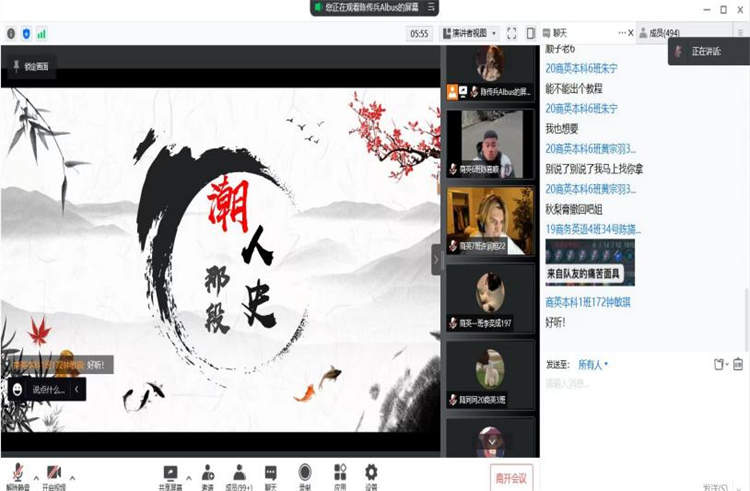 2022年4月20日晚,华亿在线主办的讲座活动“大学生讲坛”受疫情影响,以线上会议的模式进行。本次主讲人来自外语外贸学院20商英本科1班(国际商务)的陈传兵同学,现任学校艺术团宣传组干事,班级心理委员,学校羽毛球协会策划部干事,主题是“那段潮人史”,此次讲座的指导老师是外语外贸学院的龙鑫玲老师。