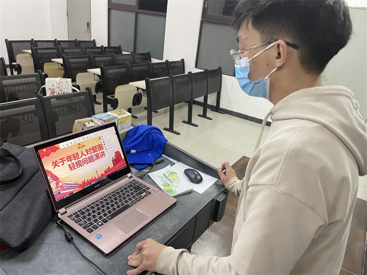 赖青林同学首先说明了当下中国的社会制度对比美国的社会制度存在优越性,同时指出在当下中国面对北约的压力越来越大的现状,也用边防士兵牺牲在中印边境却无人知晓的例子,总结出了身为大学生应该爱戴自己祖国,支持自己祖国的结论,指出了当代年轻人过于沉溺于娱乐之中,追捧着所谓的“明星”,殊不知当下的安稳和平是许多默默无闻的人用牺牲与奋斗换来的,进一步向同学们展示爱国教育的重要性,并提出了大家应该牢记:我们不是生活在一个和平的年代,我们只是生活在了一个和平的国家,一个强大到能保卫自己和平的国家,并我们都应该为此而感到骄傲和幸运。