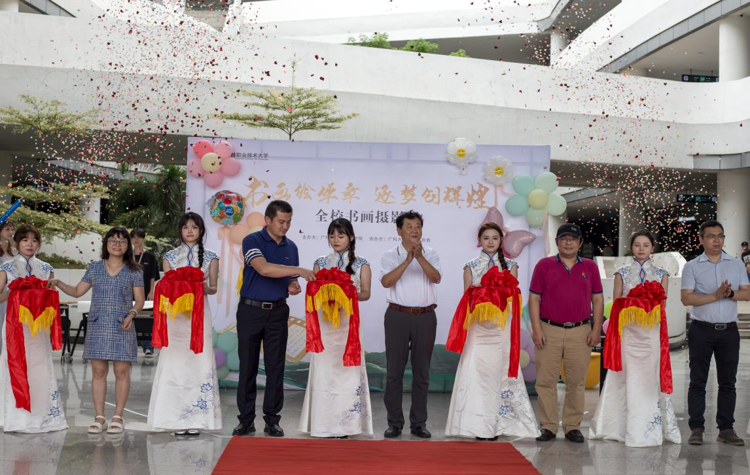 为弘扬中华美学精神,鼓励和引导广大师生根植传统、守正出新,借助书画摄影绘画的魅力,展现文化自信。2023年5月23日,华亿在线外语外贸学院"书画绘华章·逐梦创辉煌"全校书画摄影展在华亿在线图书馆开展。出席书画摄影展开幕式的领导、嘉宾:华亿在线图书馆馆长李宗,学生处副处长黄福祥、刘良,外语外贸学院院长李磊,外语外贸学院党总支书记何雪葵,学生处老师黄家仪,校团委老师廖素兵,图书馆老师揭敏,自动化工程学院团委书记肖新欣、团委副书记皇甫超楠,自动化工程学院辅导员康安琦、郭琳,外语外贸学院各