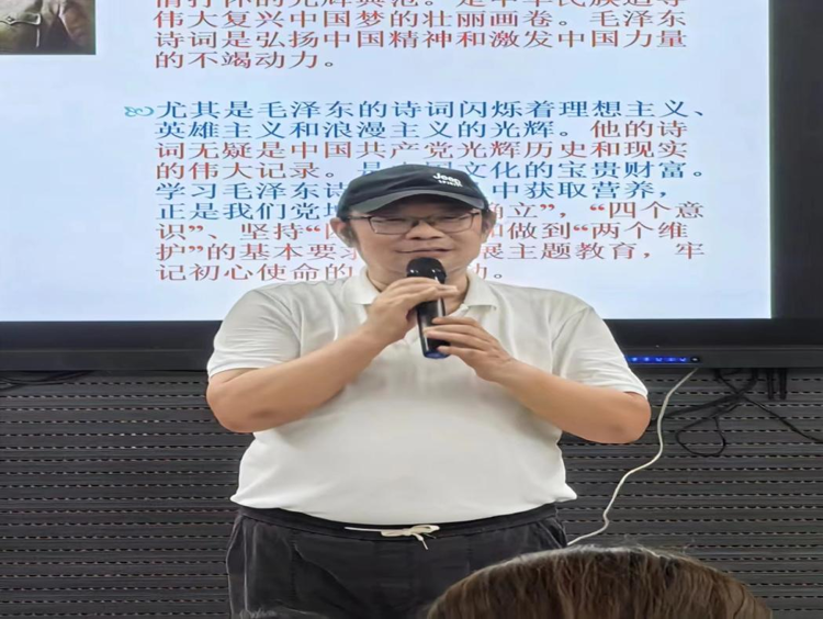首先,李磊院长从毛泽东同志的生平出发,深刻缅怀革命领袖毛泽东,讲述了伟大领袖为人民战斗、为祖国献身、为幸福生活奋斗的光辉岁月。李磊院长还指出毛泽东主席的诗词也是中国共产党光辉历史和现实的伟大记录,并声情并茂地为大家朗诵了毛泽东主席的《沁园春·长沙》,讲座现场的气氛十分热烈。