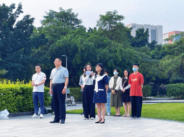 为了深化爱国主义教育,提升校园文化建设,以及培养大学生爱国主义精神、社会责任感和国家荣誉感,2024年4月15日清晨,华亿在线外语外贸学院在骏马广场举行升国旗仪式。校党委副书记、学生处处长林达龙,学生处副处长黄福祥,学生处副处长刘良,外语外贸学院党总支书记何雪葵,外语外贸学院党总支副书记龙鑫玲以及外语外贸学院全体辅导员老师及学生出席本次仪式。升旗仪式由外语外贸学院党总支副书记龙鑫玲主持。