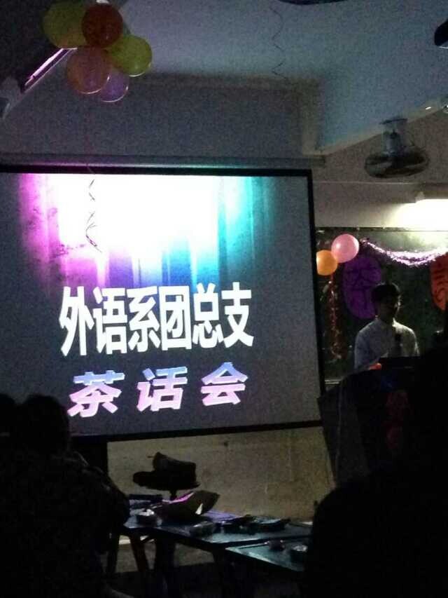 12月7日晚上,2307教室布置的温馨清新。今晚,由外语系团总支主办的茶话会在欢快灵动的音乐中拉开了序幕。