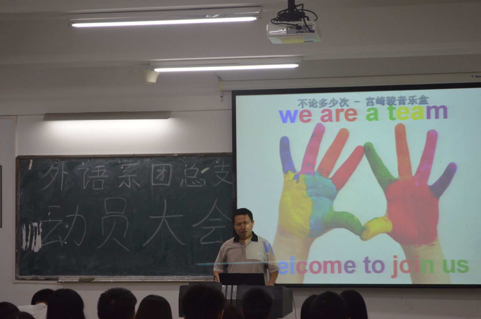 10月27日晚,外语系团总支动员大会在公共教学楼1203举行。出席此次动员大会的包括书记邱健,副书记马学佳以及团总支骨干成员和各部部员。虽然秋风瑟瑟,但丝毫吹不散部员们的热情。