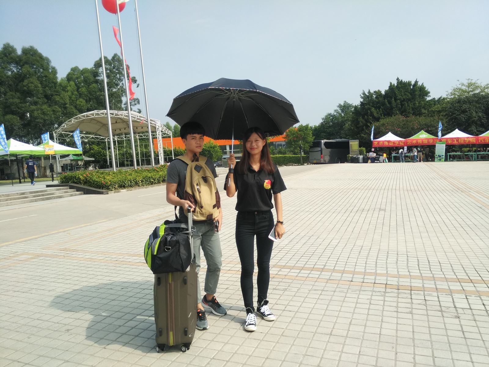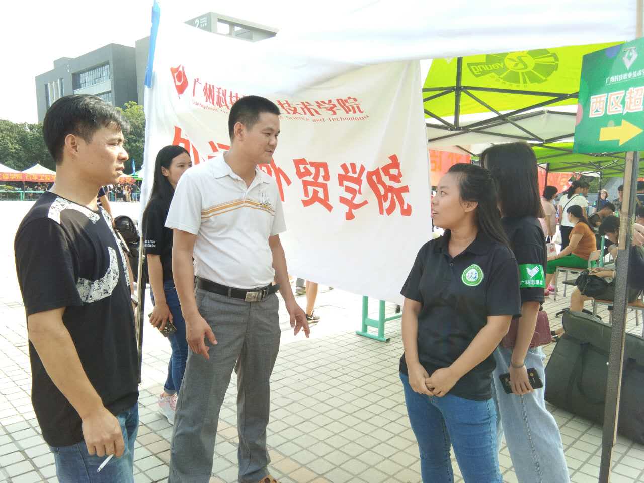 外语外贸学院院长方玲玲、党总支副书记刘良到迎新现场了角迎新工作情况