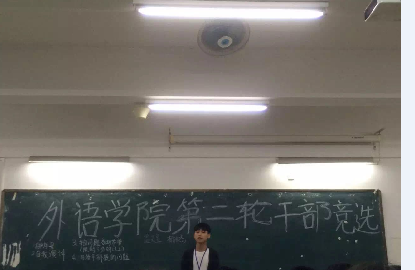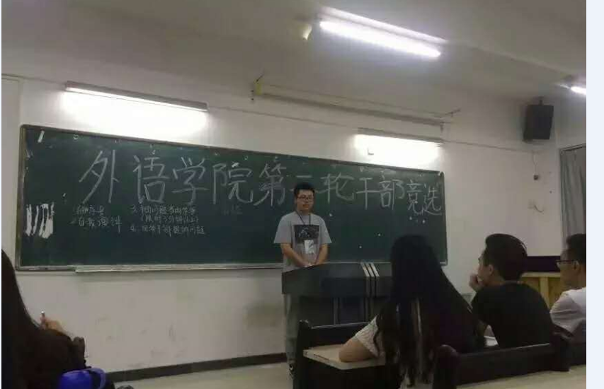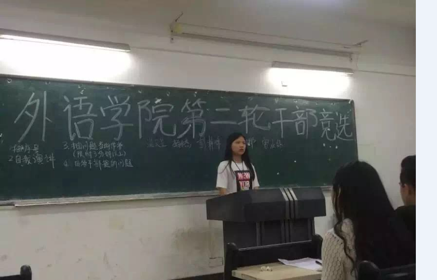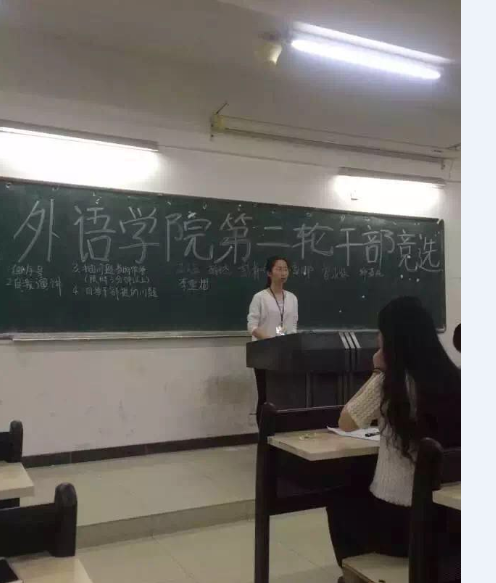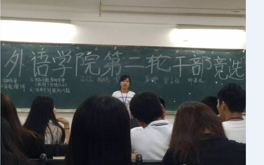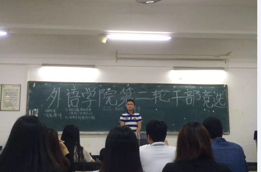 2016年4月21日在1203课室举行了外语外贸学院团总支第一次干部竞选。时间过得很快,又到了一年一度的换届竞选大会。座下的小伙伴是什么心情呢?加油!!!