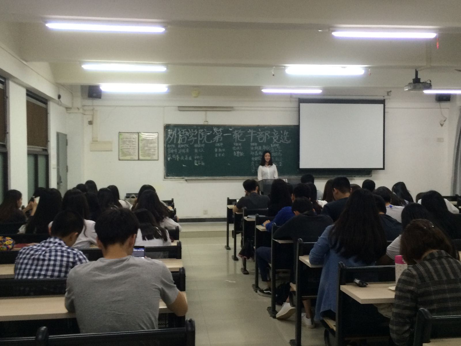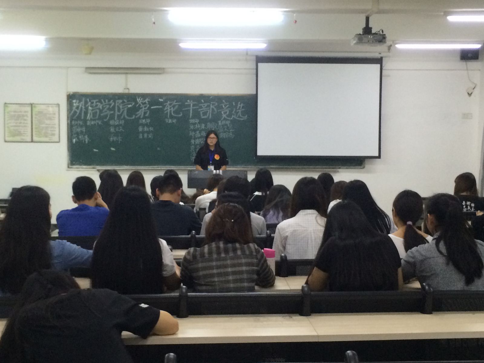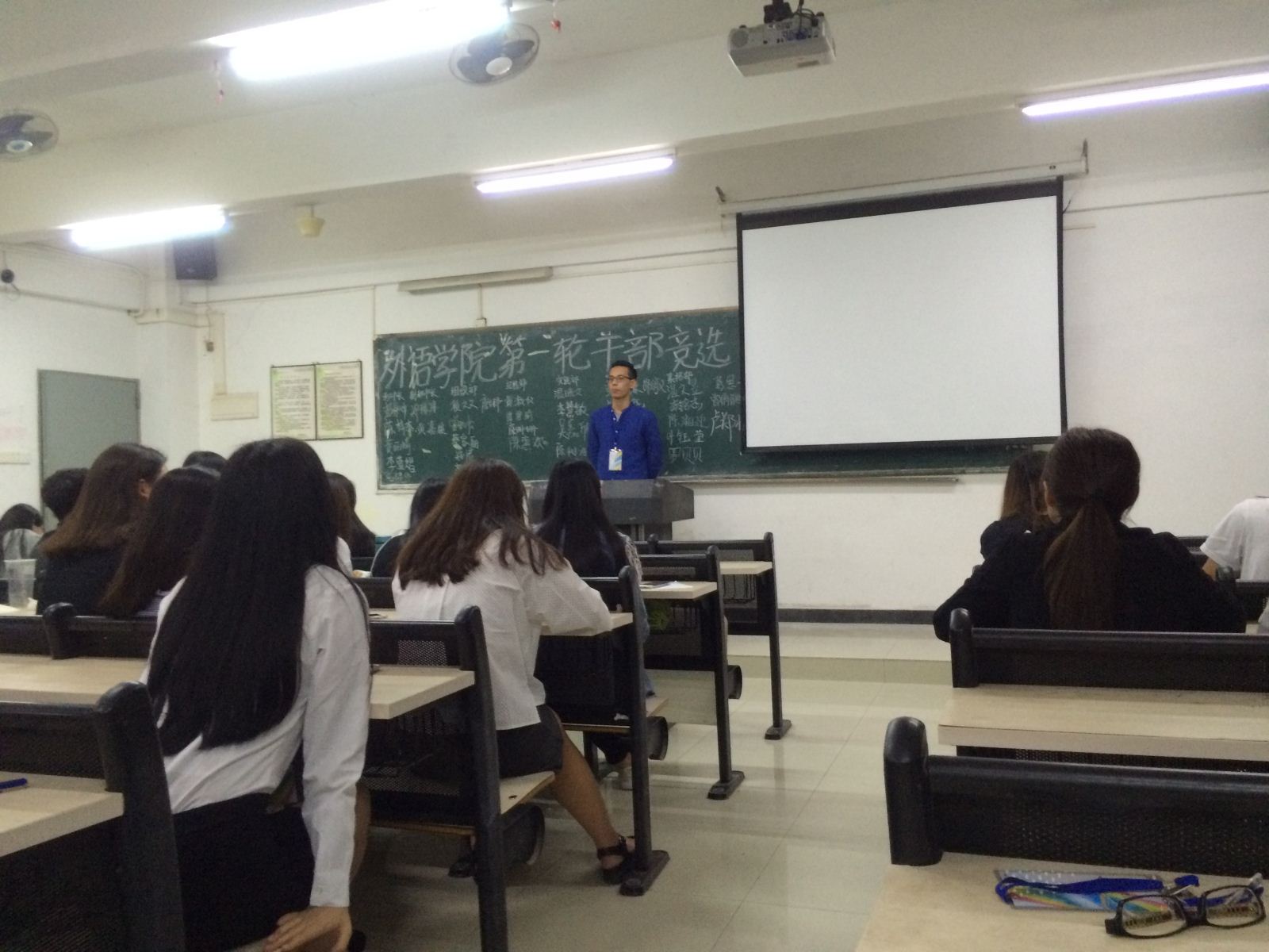 2016年4月21日在1203课室举行了外语外贸学院团总支第一次干部竞选。时间过得很快,又到了一年一度的换届竞选大会。座下的小伙伴是什么心情呢?加油!!!
