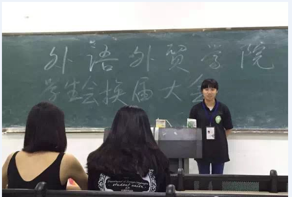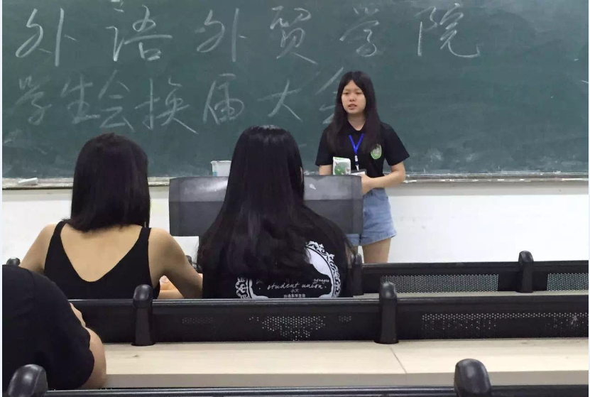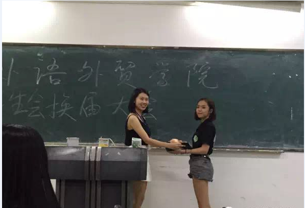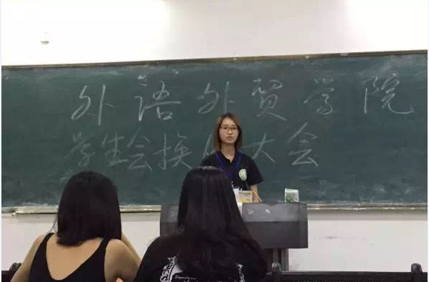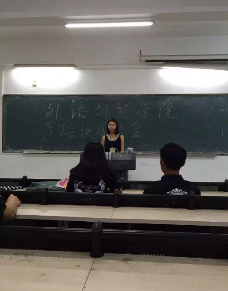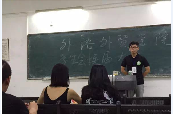 2016年5月23号晚上8点40分在1204课室进行外语外贸学院学生会换届大会。当晚有14届主席陈晓军,14届秘书长张桂玲,14届各部长和15主席黄子恒,副主席崔馨月,秘书长梁释文以及15届各部长到场。