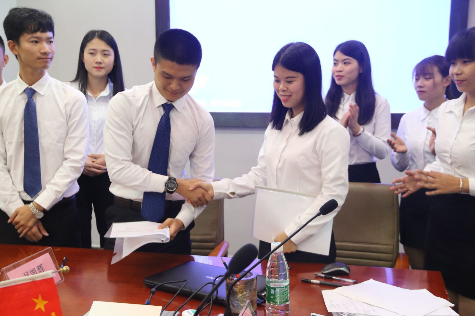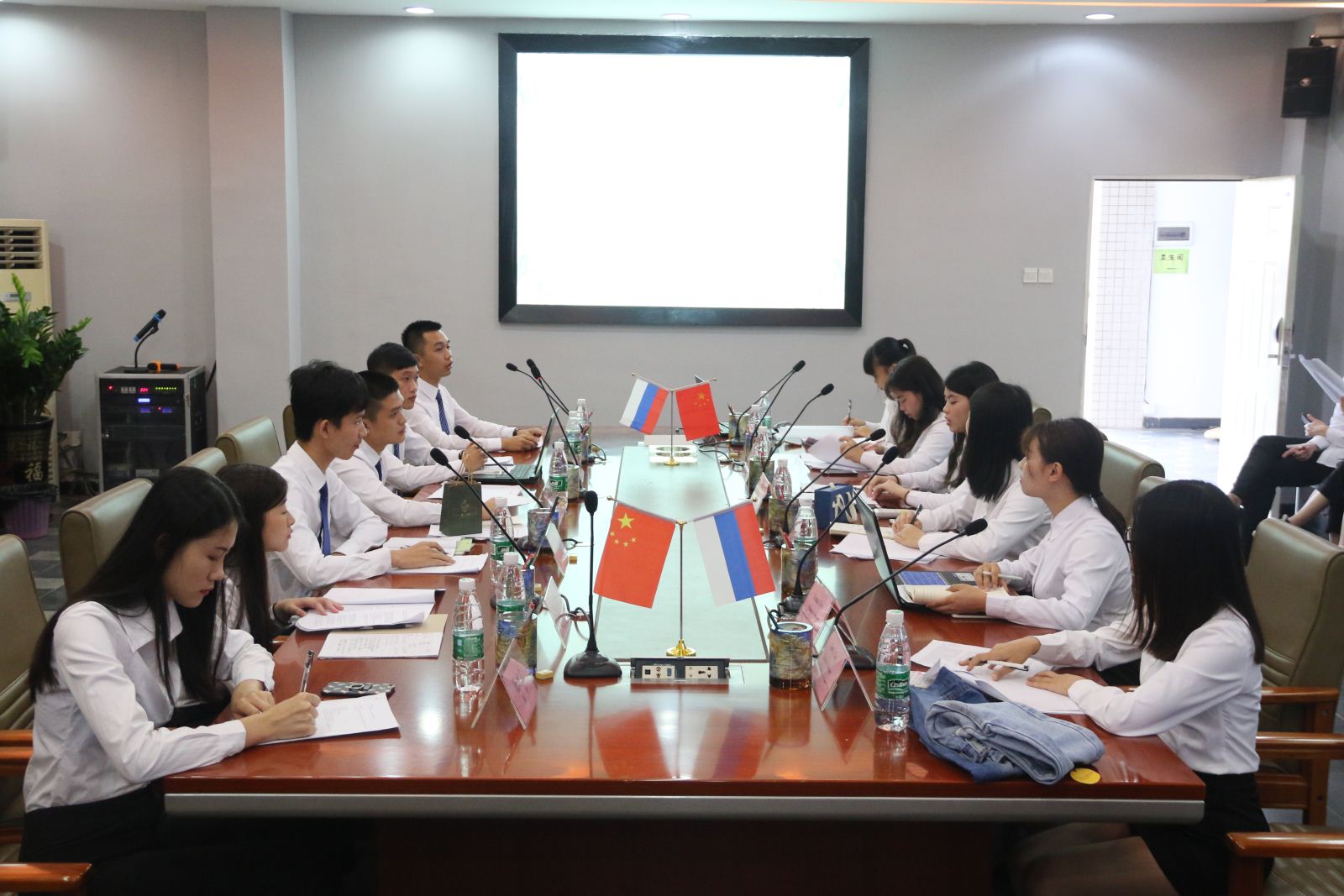 为了给大家提供一个系统化、国际化、规范化学习国际商务谈判理念和规则的机会,推进专业理论知识与实践的有机结合。2017年5月,在国际商务谈判吴祖建老师的指导下,2015级商务英语专业的同学在行政楼四楼会议室开展了“模拟国际商务谈判大赛”活动。